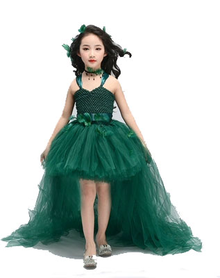 Girl ink green pompoo dress custom dress elf forest children photography contest Halloween parent child walk show