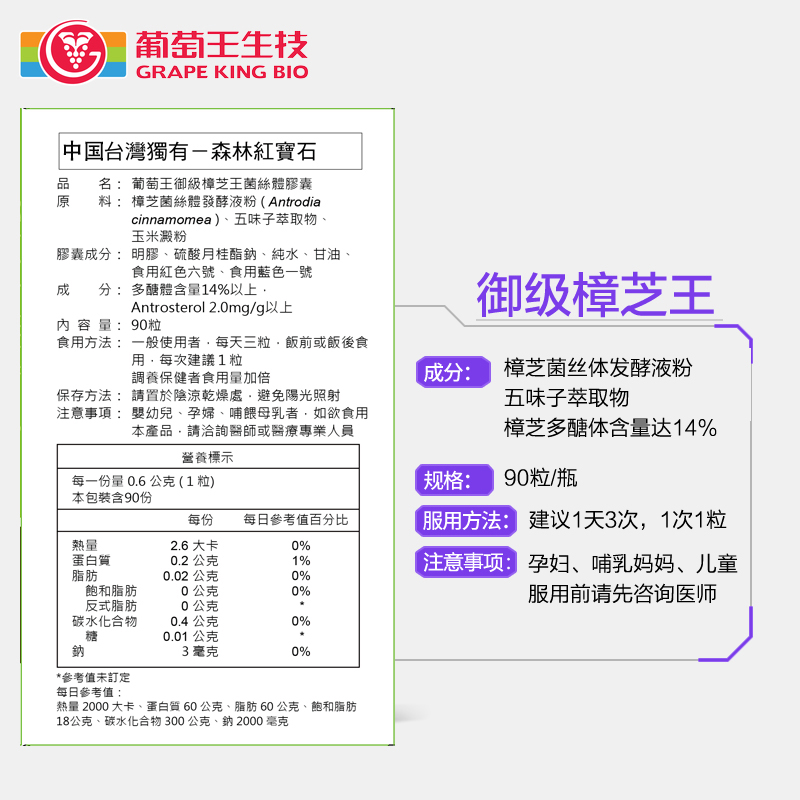 Taiwan Grape King Patented Cow Zhangzhi Mushrooms 10 Times Concentrated Solution of Alcohol-induced Liver Blood Pressure Postoperative Intensive Recovery