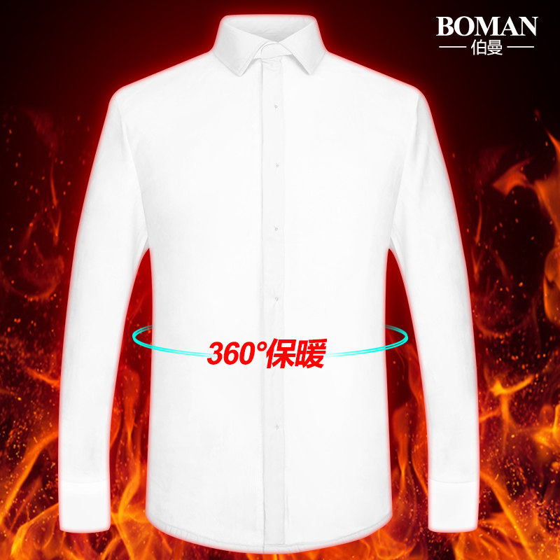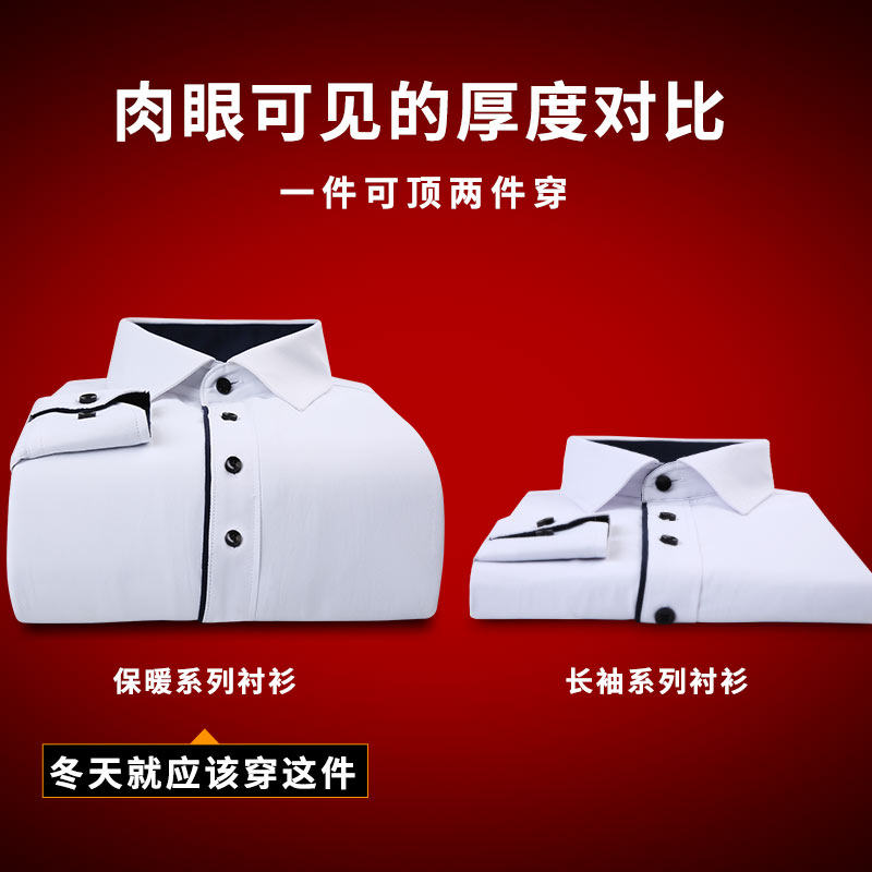 Autumn Winter Men Warm White Shirt Sashimi Business Professional Cotton Pure Color Tooling Long Sleeve Plus Suede Thickened Shirt Inch