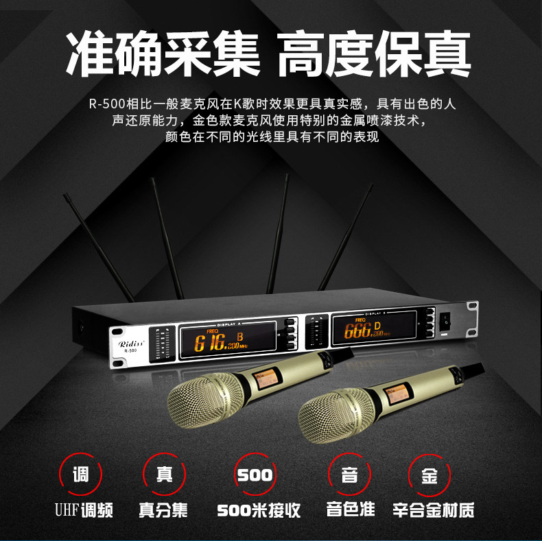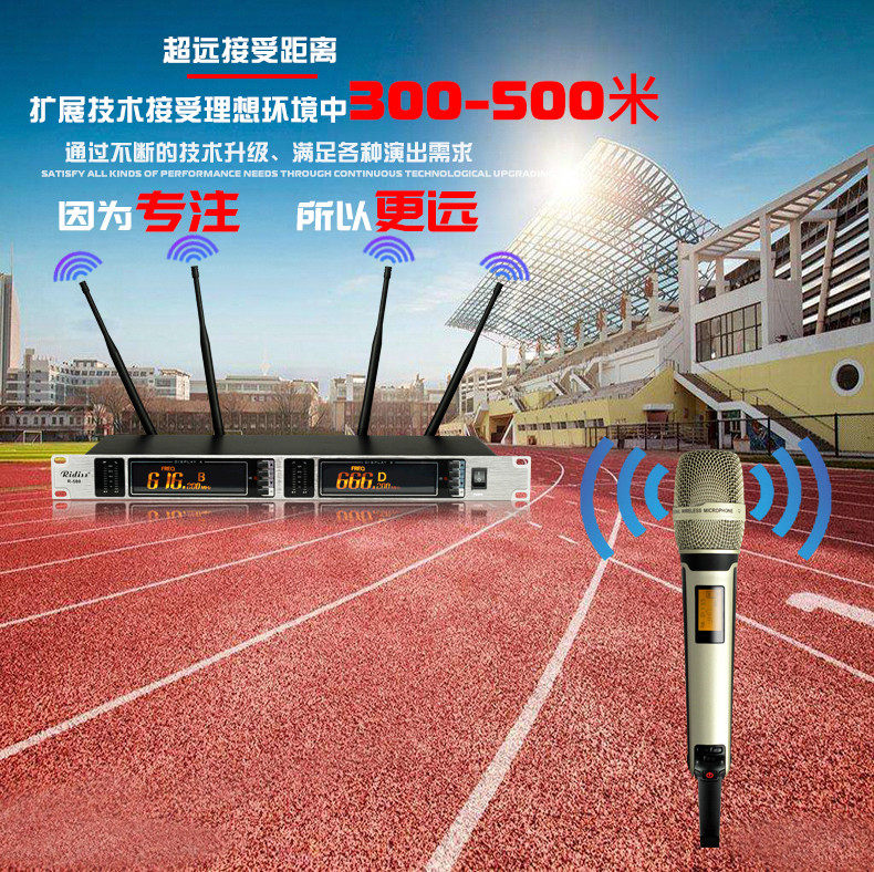 Ridesiss R-500 One drag two wireless microphone School playground Plaza Performance Microphone Far 500 m Reception