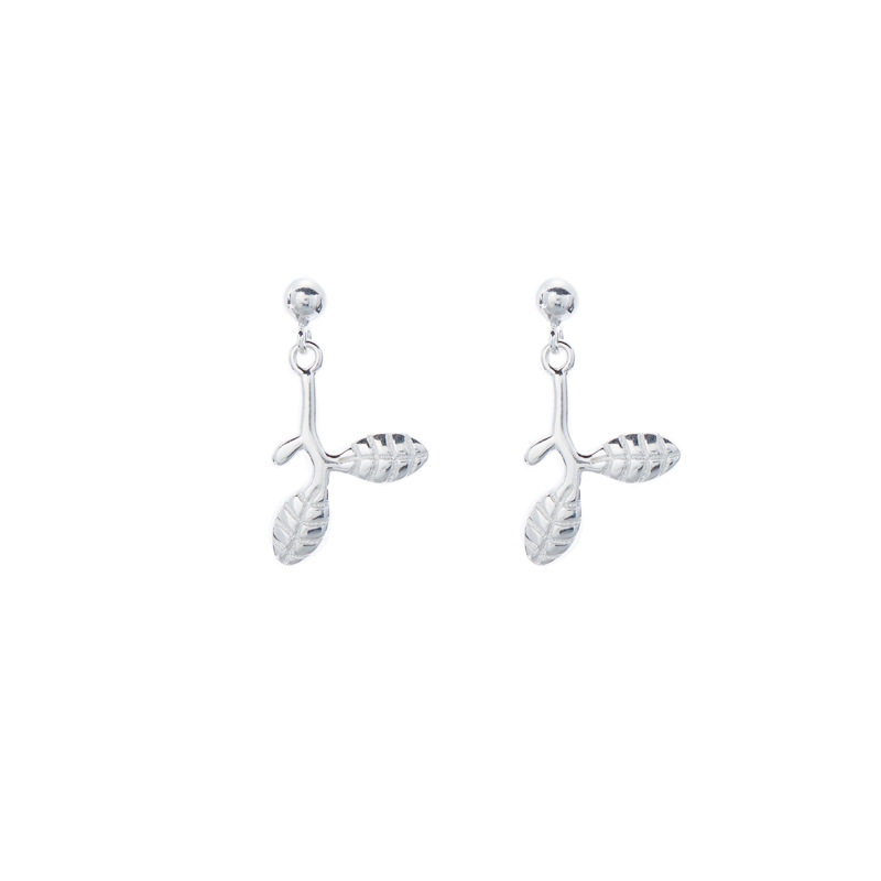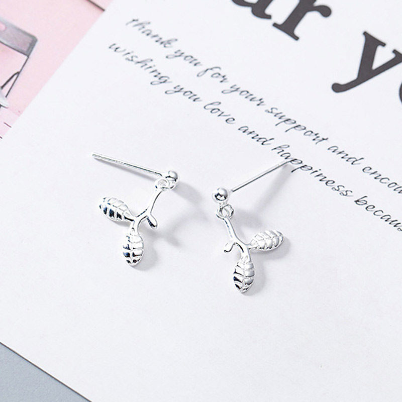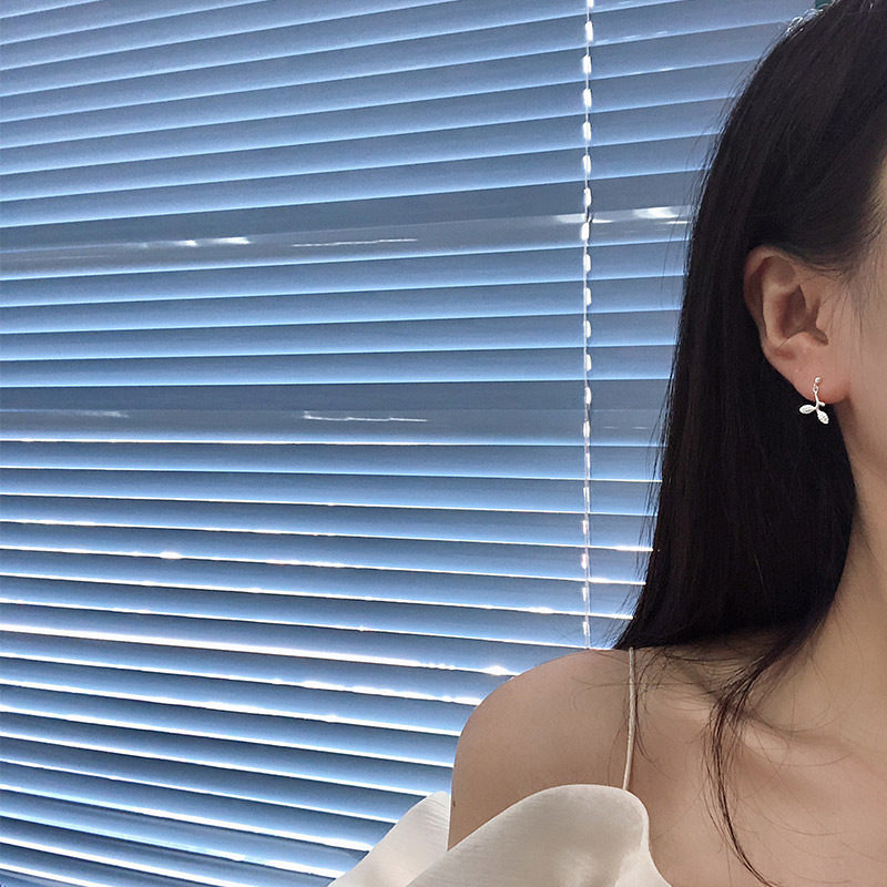Rui Hongxiang 925 pure silver sprouted tender leaf ear needle Korean leaves tender leaf cute 100 lap earrings for women's earrings