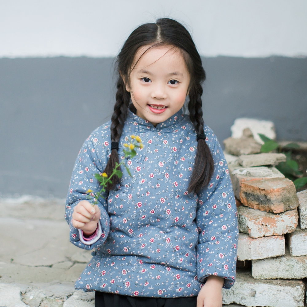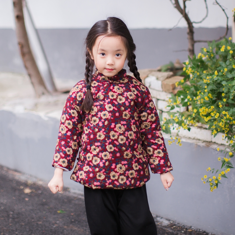 Children Laid Cotton Jacket Girl Winter Comeback Ancient Broken Flowers small cotton padded jacket net Red Republic of China Wind Scout baby thickened Tang Jacket Jacket