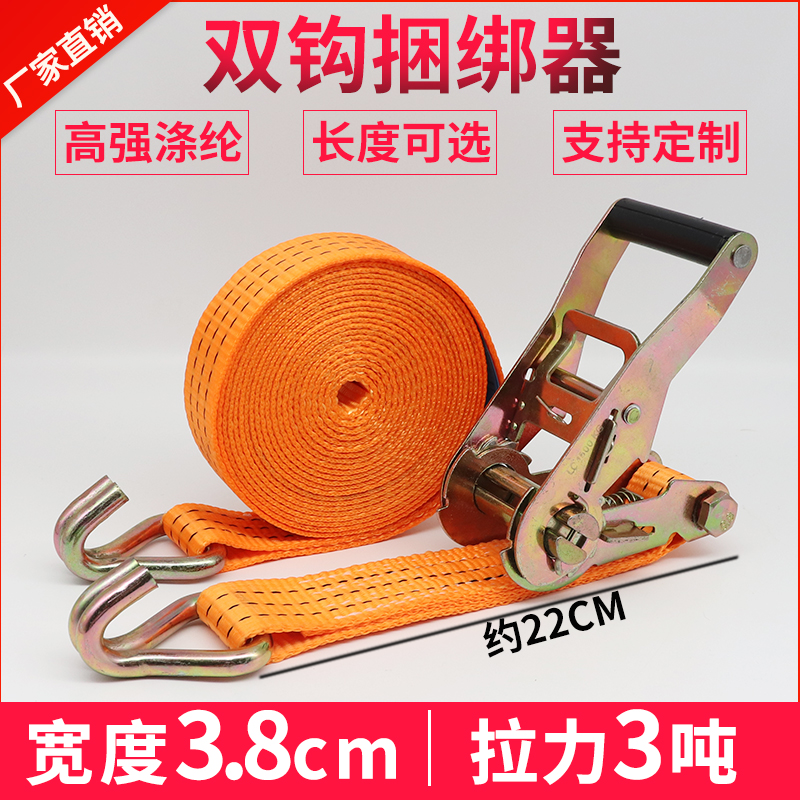 Small and medium goods bundled with 38mm Motor goods tightener with hook tightener thickened polyester fiber 2 ton fastening belt