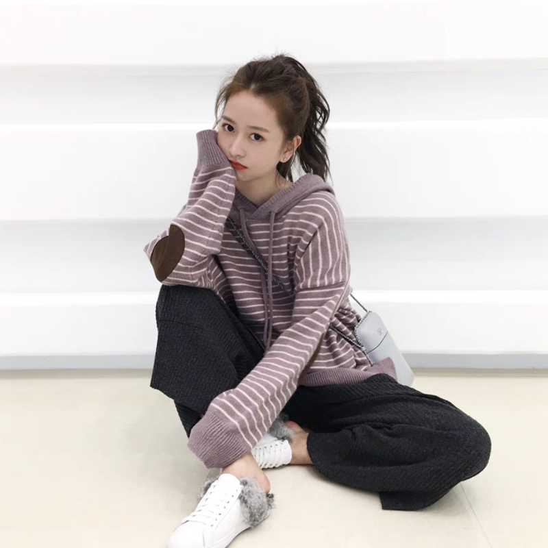 Leisure sports suit women's spring and autumn 2021 new fashion Western style fried street knitted sweater wide-leg pants two-piece tide