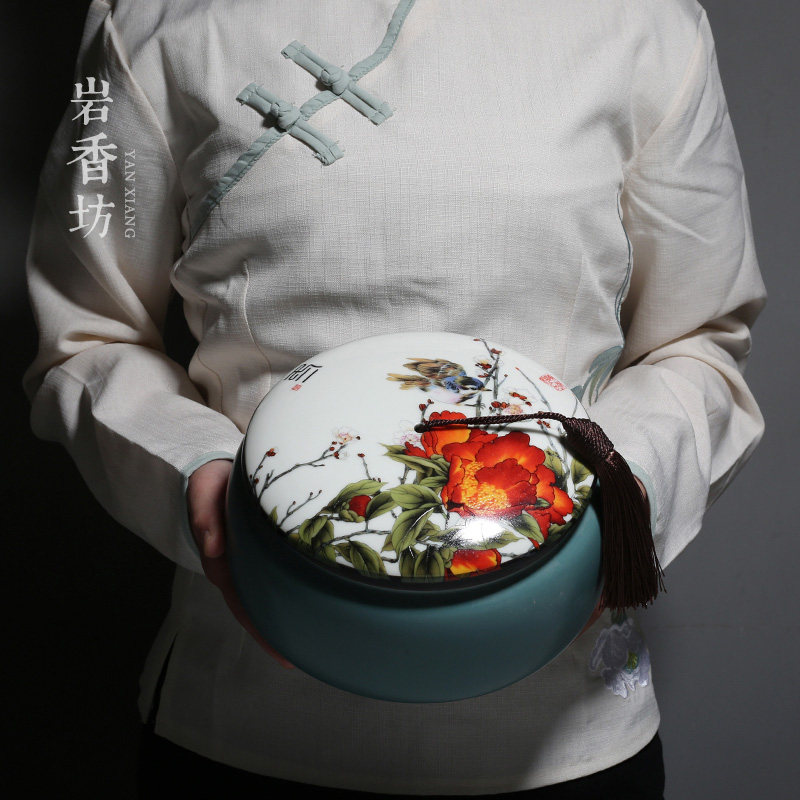 Retro-white peony small number Hei upper branches Gift Boxes (unsealed) Private room Tea Blue Porcelain-Gift Boxed Retro-Bird-in-Birds Tomatoes Shunchingli boxed (unsealed) Zen hand painted large gift box