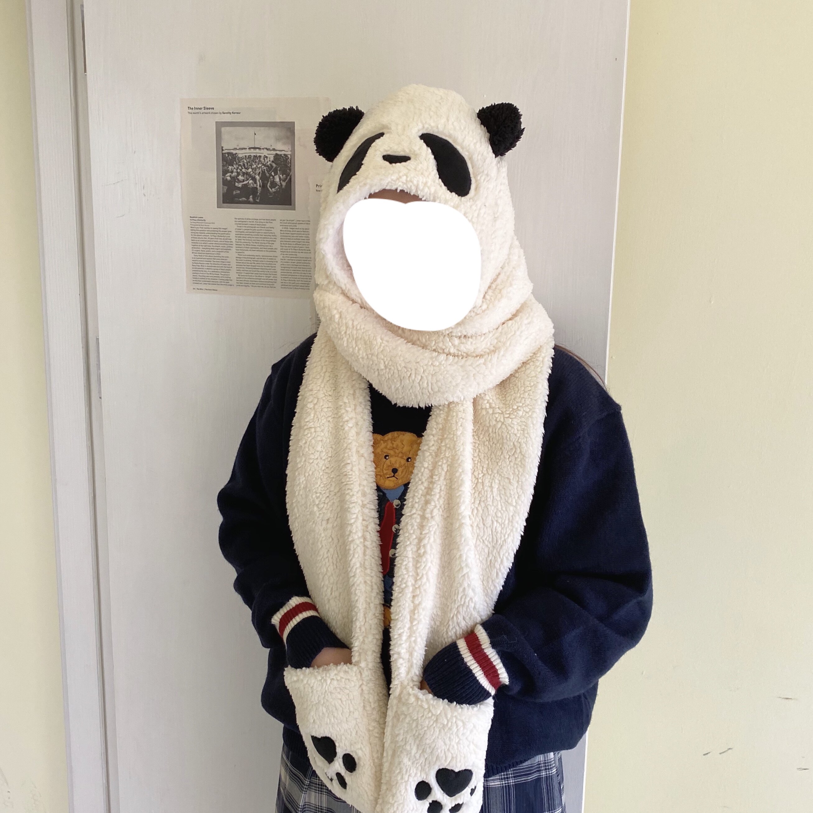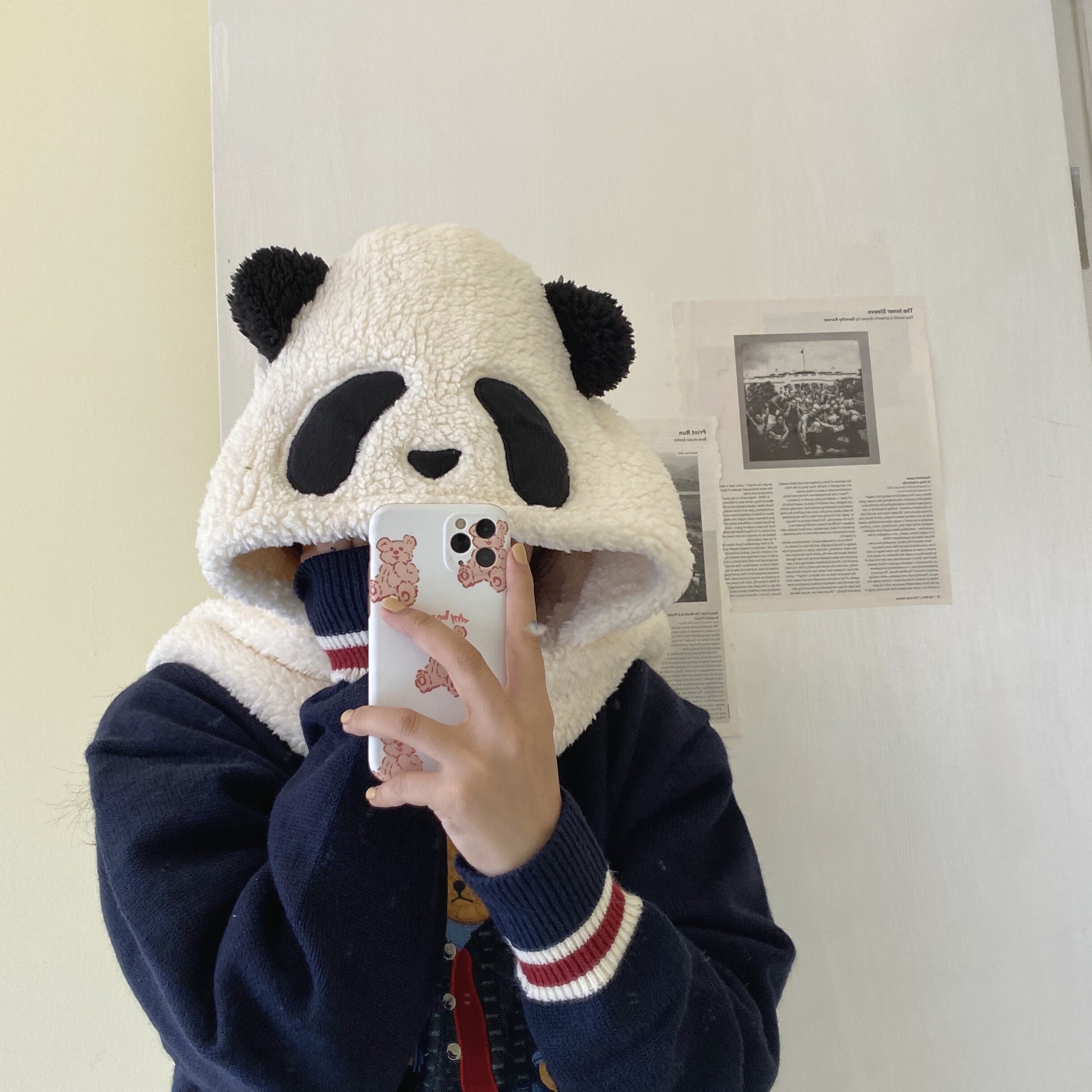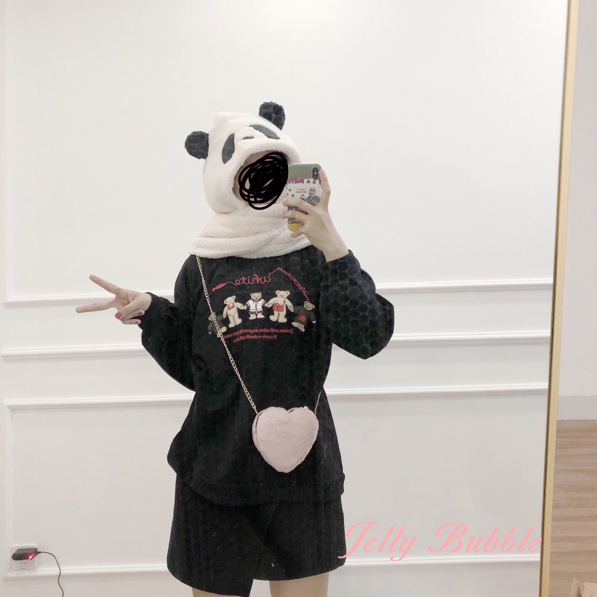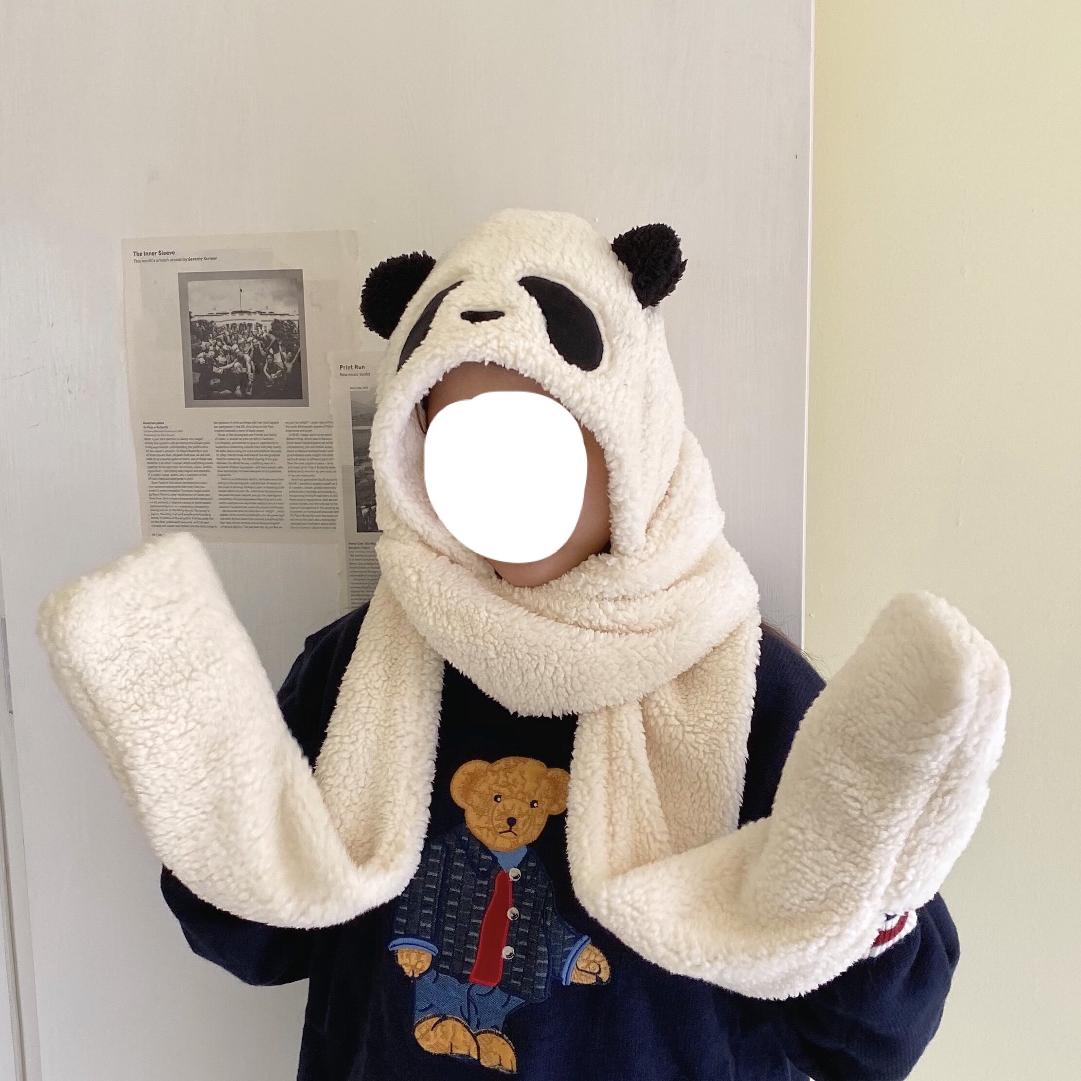 jelly bübble soft lamb wool panda ear warm windproof hat scarf gloves all-girl