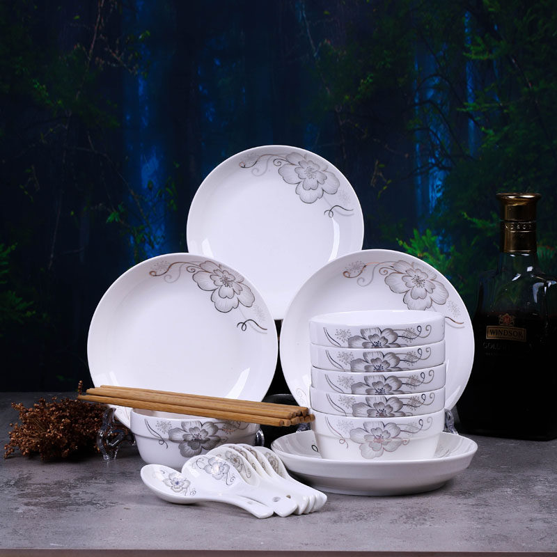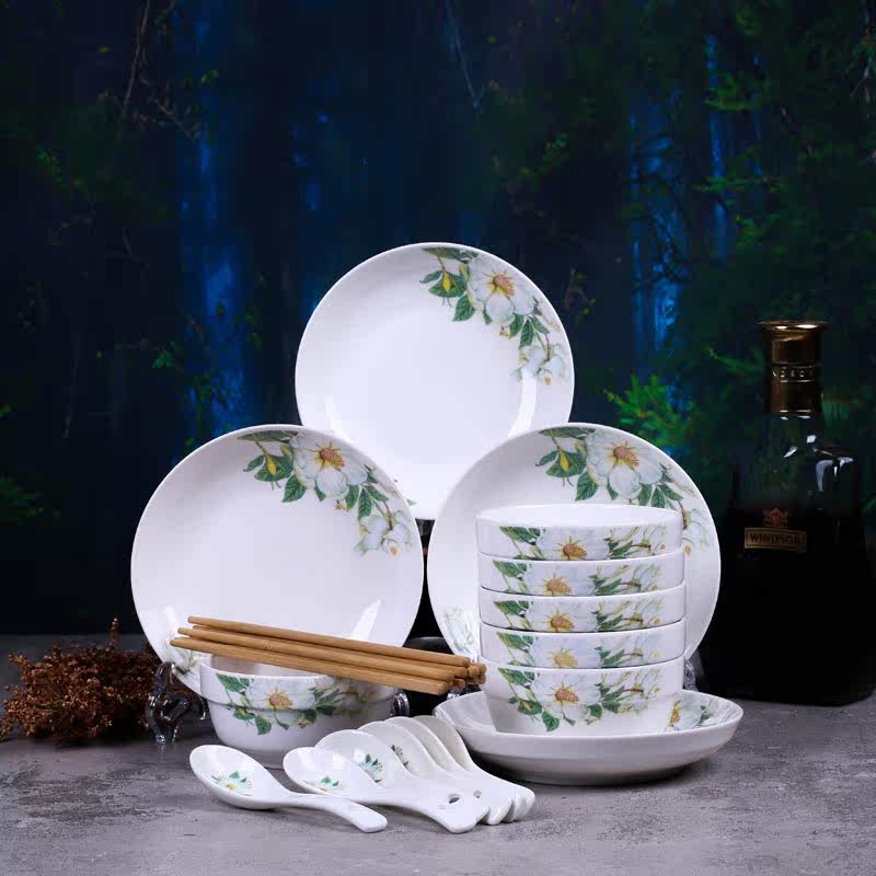 Pure white 6 bowls 4 trays 6 spoons 6 chopsticks 6 bowls 4 6 spoons 6 6 bowls 4 plates 6 spoons 6 6 Chopsticks Rose 6 Bowls 4 Plates 6 Spoon 6 Chopsticks Pink 6 bowls 4 plates 6 6 Chopsticks Lilies 6 Bowls 4 Plates 6 Spoon 6 Chopsticks