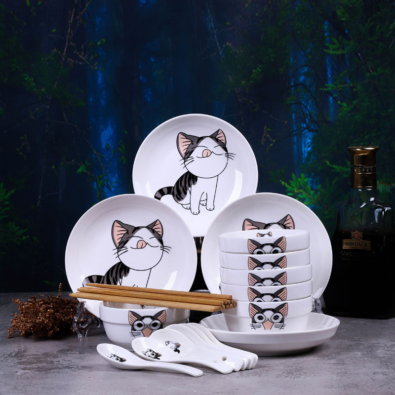 22 head cutlery 6 bowls 4 pan 6 spoons 6 chopstick Jingdezhen special price ceramic plate bowls suit Chinese style bowls and spoon chopsticks