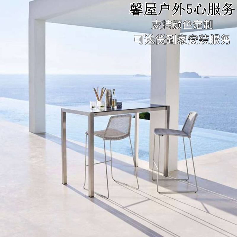 Bar chair combination bar high stool black outdoor open-air wrought iron leisure outdoor Nordic ins rattan bar chair - Taobao
