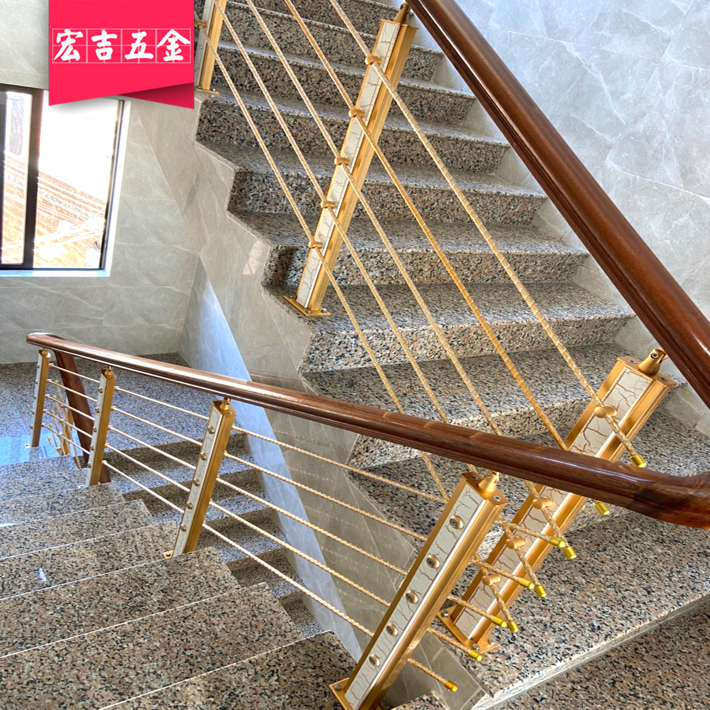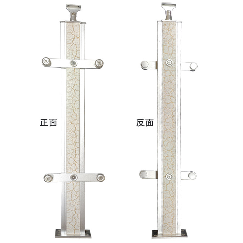 Factory direct sales Indoor aluminum alloy wood fittings sandwich glass railing staircase handrail staircase column ladder column