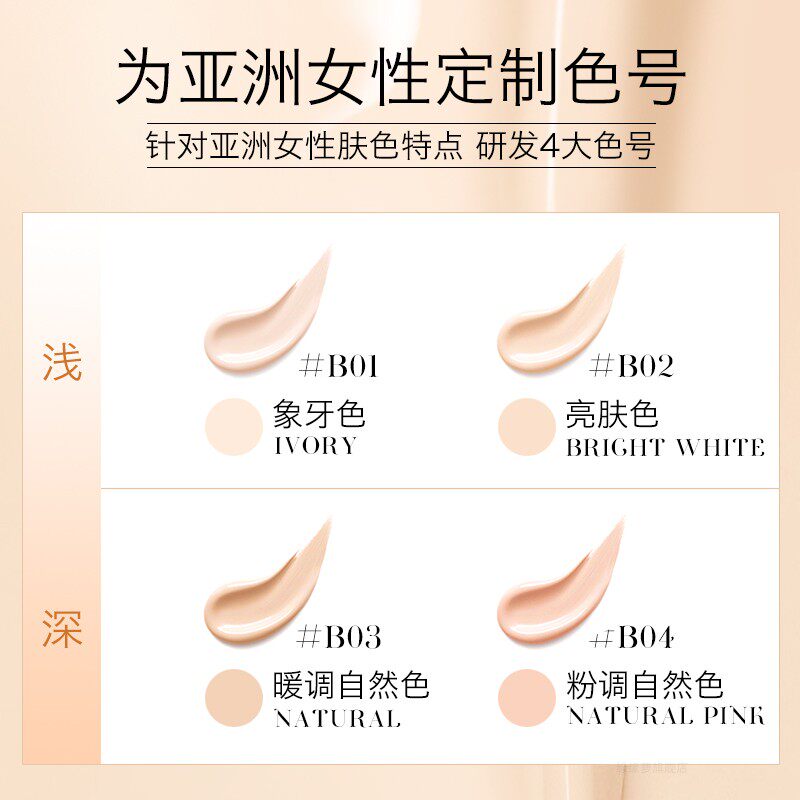B04 Pink natural color B02 Bright skin tone B03 Warm natural color B01 Ivory color