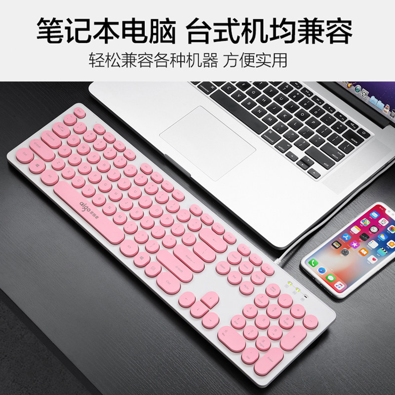 Patriots Punk Round Keycaps Cable Keyboard Synod Mouse Sets Comeback Cute Round Dot Chocolate Waterproof Business Office Home Laptop Computer Girls Keyrat Suit
