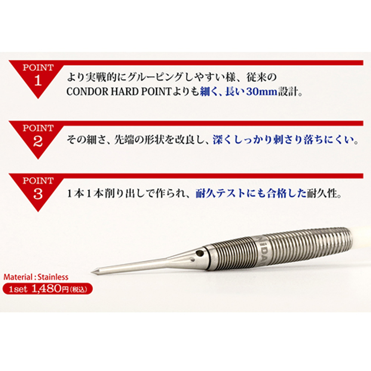 CONDOR HARD POINT LONG CONDOR 30mm LONG HARD DART Conversion Needle 1 8g Stainless Steel