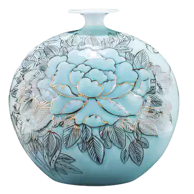 Shadow Green Peony pomegranate vase wooden base shadow green twig pomegranate vase wooden base flower blossom rich gold pomegranate box Shi Qinming flower rich gold pomegranate box Shi Qinming flower rich gold plum bottle brocade box Shi Qinming