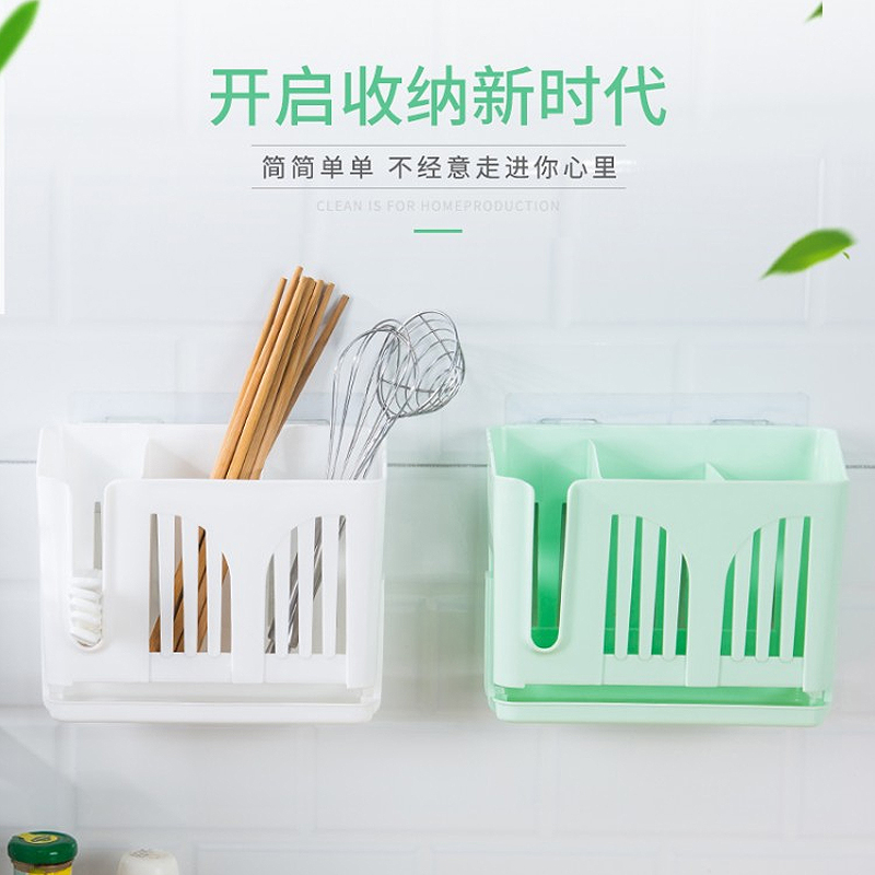 Kitchen wall-mounted chopstick cage plastic draining chopstick rack hanging spoon containing layer holder containing box chopstick cylinder chopstick cage