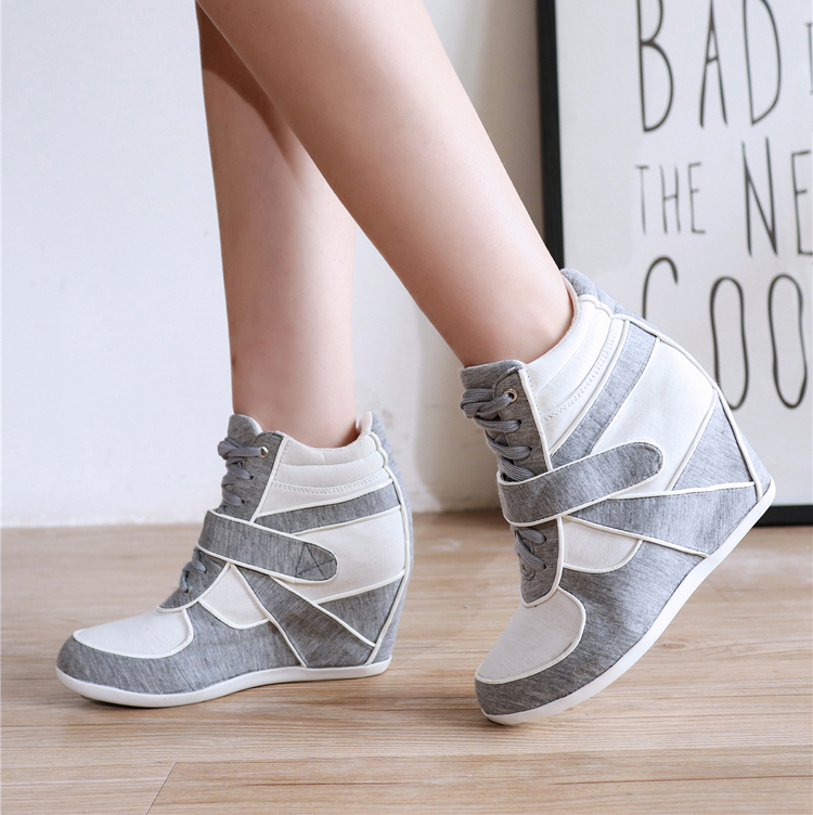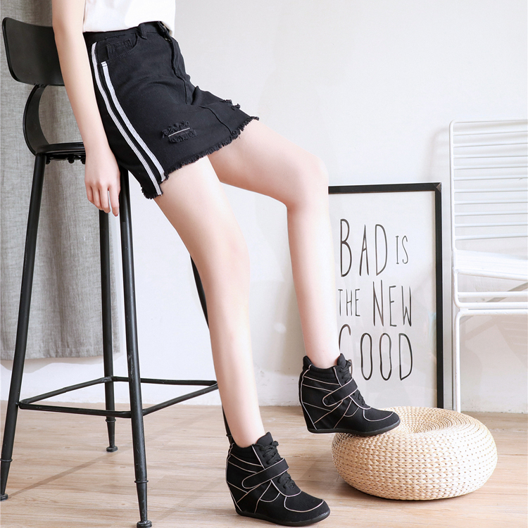 Foreign Trade Europe Station Stars Same Instealthy Inner Heightening High Cylinder Shoes Women Shoes Magic Sticker Sports Casual Shoes Black