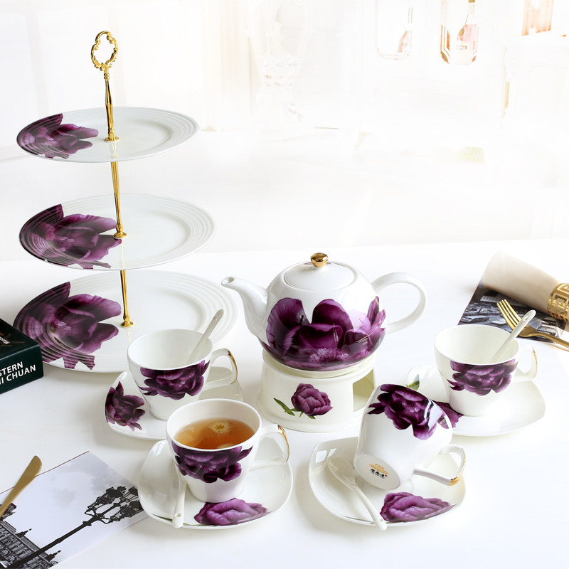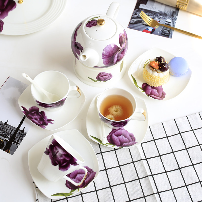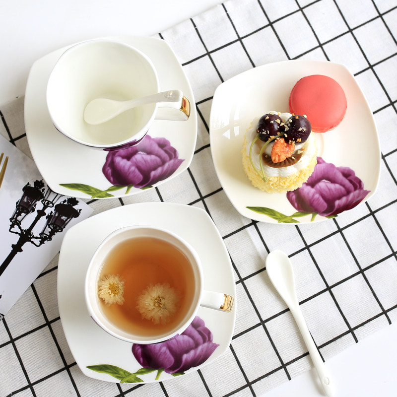 Yingchen Daying Style Afternoon Tea Tea Set Group Brief Home Coffee Cup Ceramic Flower Tea Cup O Style Tea Tea Set Group