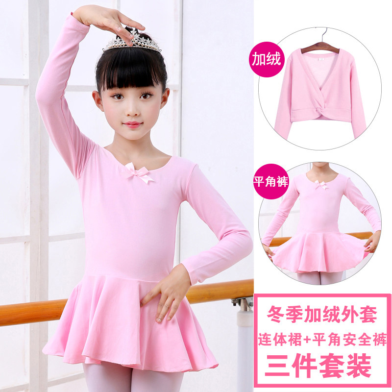 Children's Dance Clothes Children's Fall/Winter Long Sleeve Girls Children's Training Clothes Jacket Plus Velvet Shawl Girl's Ballet Dress