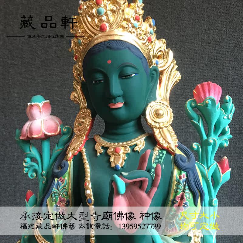 Collection Xuan Green Tara Buddha Statue Doro Bodhisattva Tibetan Tantric Guanyin Green Tara Master Respect Painted Buddha Statue Ornament