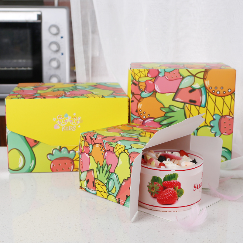Colourful fruit cake box 4 inches (5 only) Black Flowers World Cake Box 6 Inches (5 Only) Black Flowers World Cake Box 8 Inches (5) Vegan Sketch Cake Box 8 Inches (5 Only) Five Color Series Cake