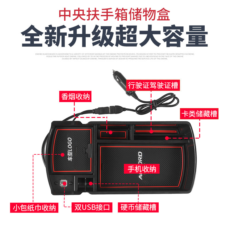 (Upgraded version of the armrest box storage box)Dual USB interface central control cup storage grid (armrest box storage box) (Seat gap box)Flocking (upgraded version of the armrest box storage box)Dual USB interface central control cup storage grid (armrest box storage box) (Seat gap box) Flocking (upgraded version of the armrest box storage box)