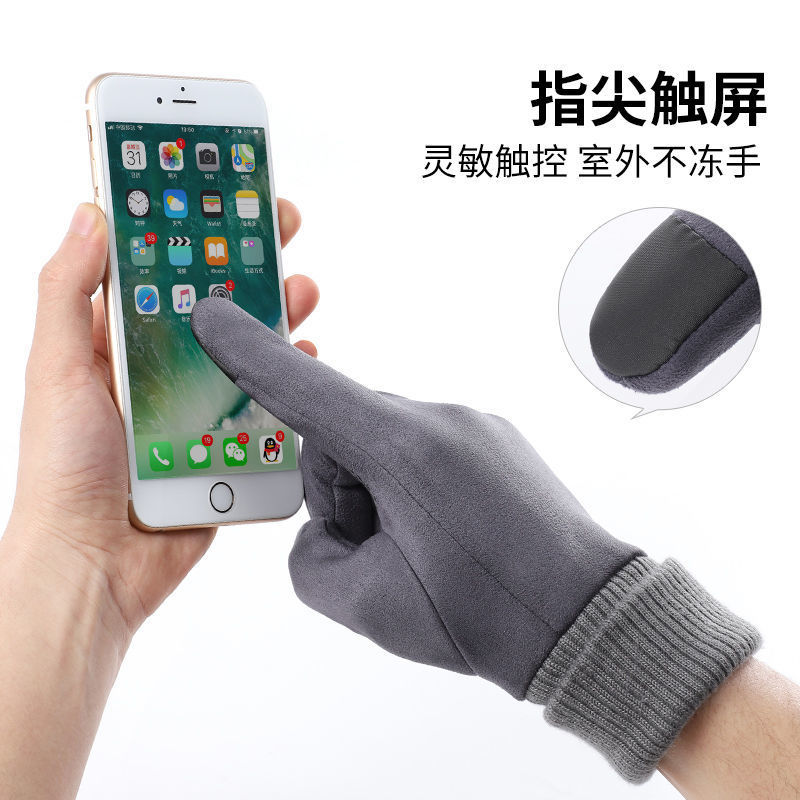 Bike Outdoor Grip Suede Gloves Autumn Winter Riding Long Finger Warm Touch Screen Non-slip Electric Motor Car All Finger Gloves