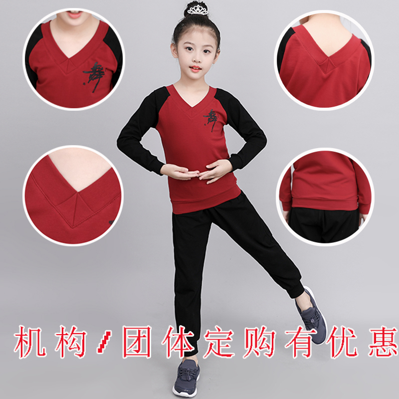 Children's dancing girls'practice to wear two style suits Long sleeves Autumn Winter Chinese dance girls perform boys' cotton