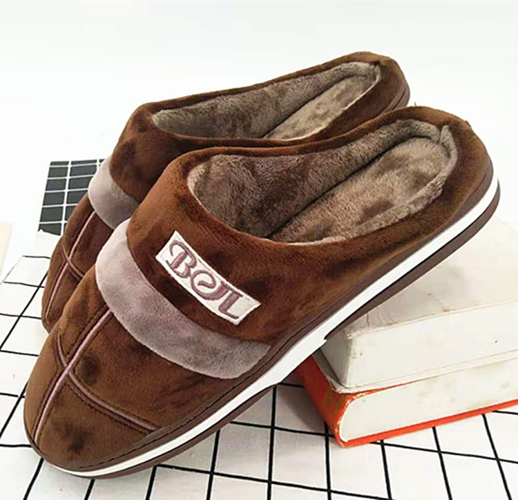 Cotton slippers shoes men's winter large size indoor non-slip home shoes men's large plush warm soft bottom home