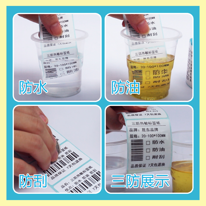 Three anti-heat sensitive bar code label paper milk tea shop e post treasure logistics supermarket electronic scale weigh paper self-adhesive printing paper custom 100 70 90 50 80x60x40x30 20 label barcode paper