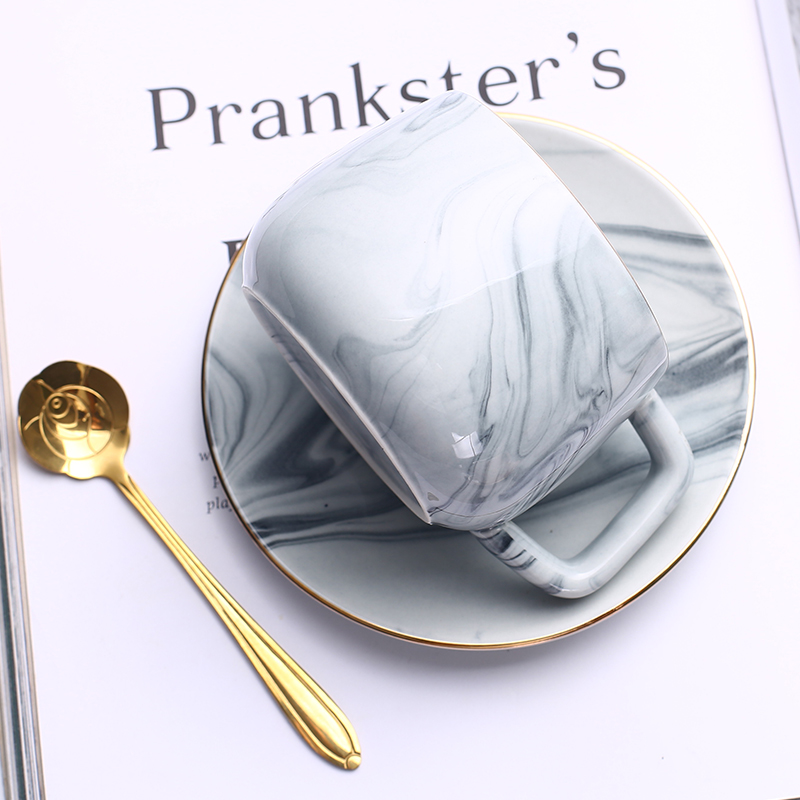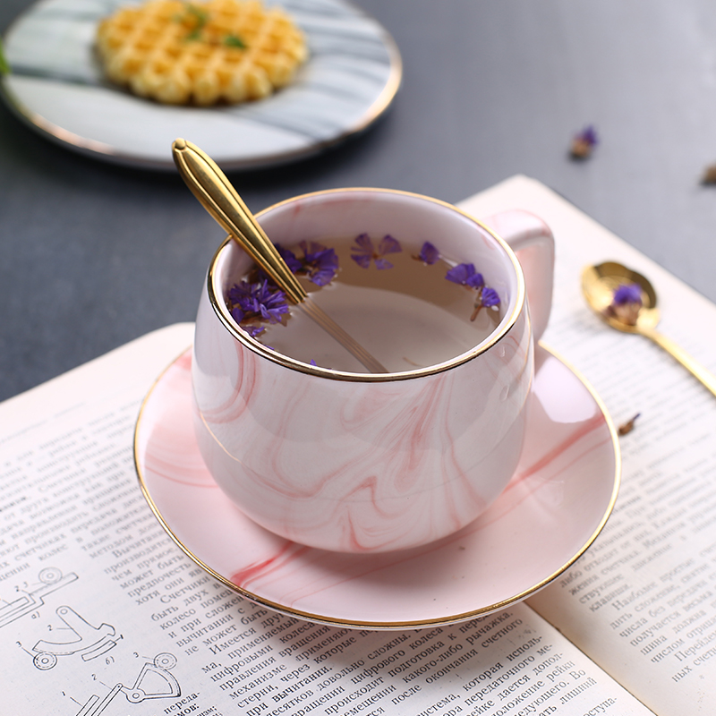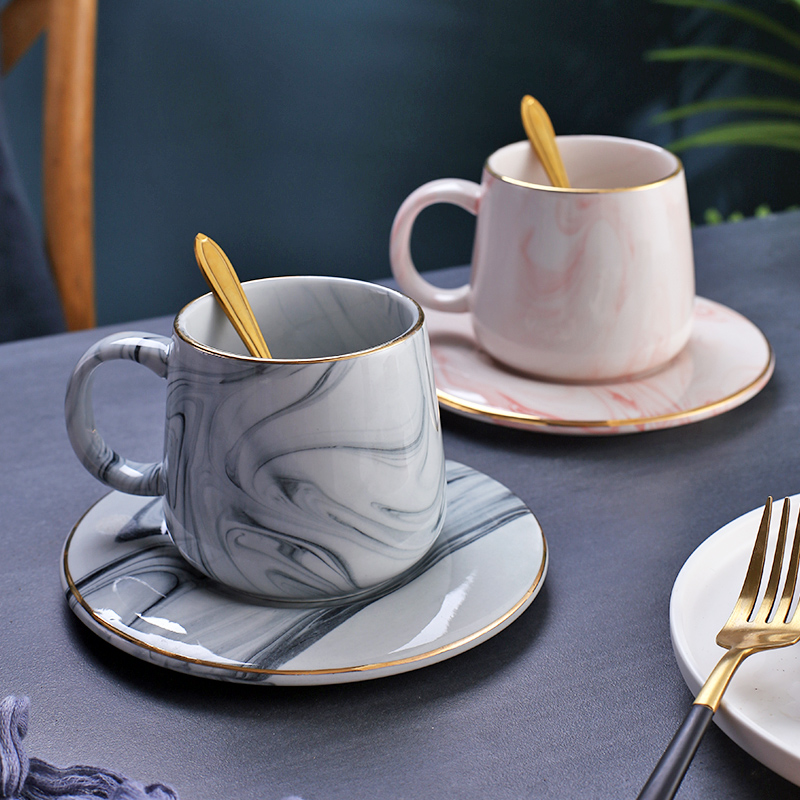 Ceramic Nordic Marble Coffee Cup Disc Suit Mark Cup Minimalist Home European Style Small Lavish Elegant Flower Tea Cup