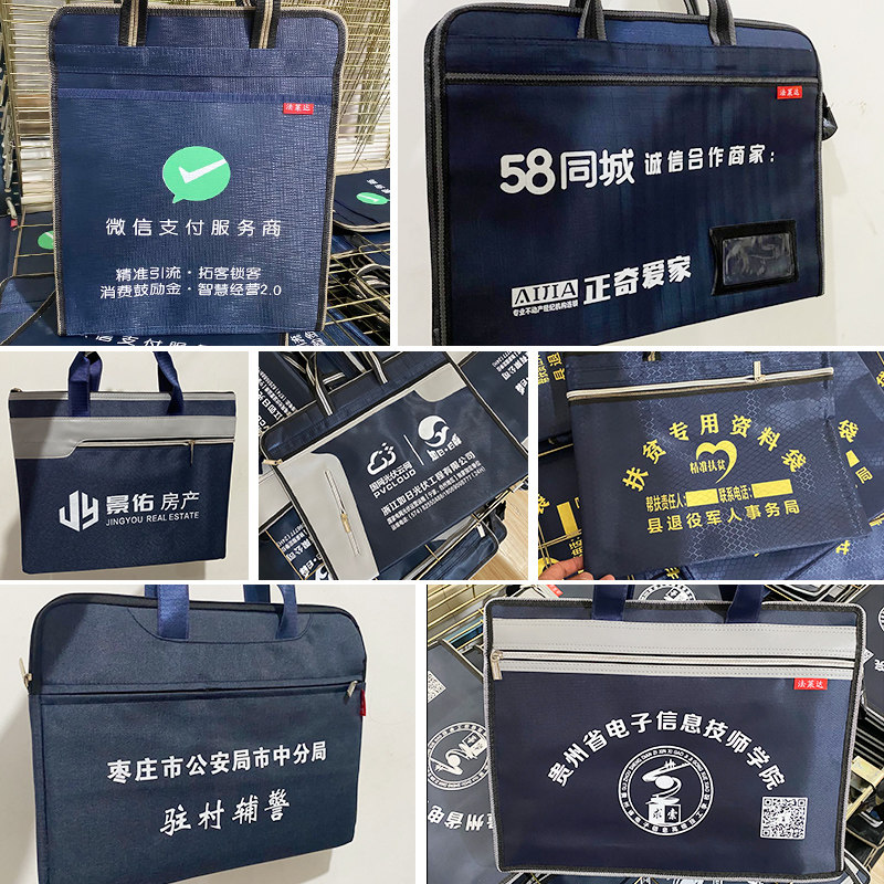 Portable document bag Oxford canvas bag a4 tutoring bag information bag briefcase conference zipper bag Custom printed logo