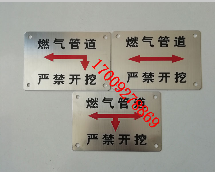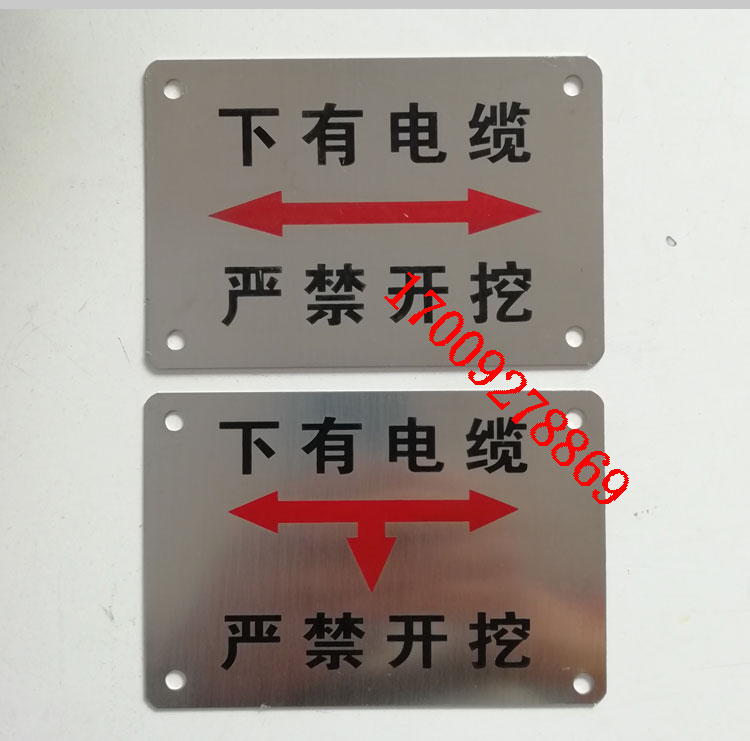 There is a cable under stainless steel strictly forbidden to dig towards the gas pipe ground underground power warning signs ID cards