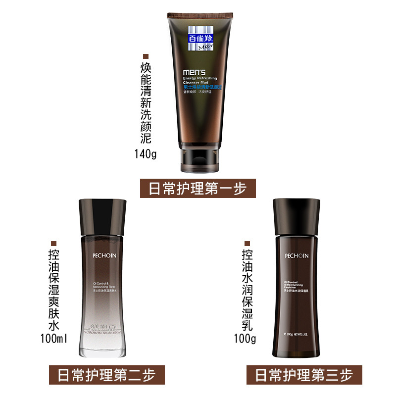 Pechoin men's revitalizing and refreshing set skin care products water emulsion cosmetics three-piece set oil control acne acne moisturizing moisturizing