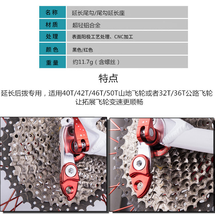 Road bike lug hook extension converter Frame tail hook Mountain bike extension seat expansion flywheel rear dial tail hook