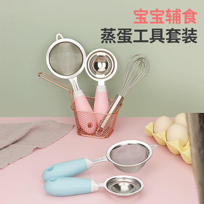 Household baby colander steamed egg custard baby filter screen Non-food tools Egg white egg yolk separator Three-piece set