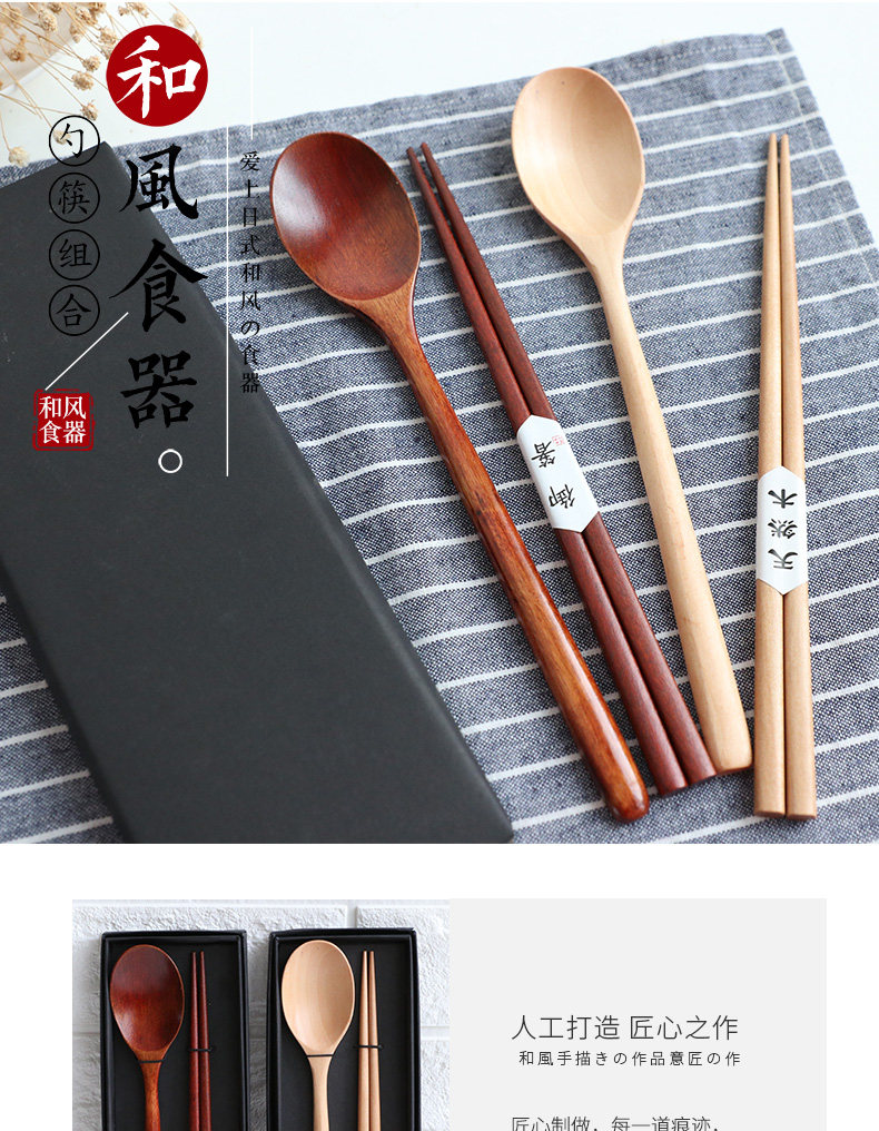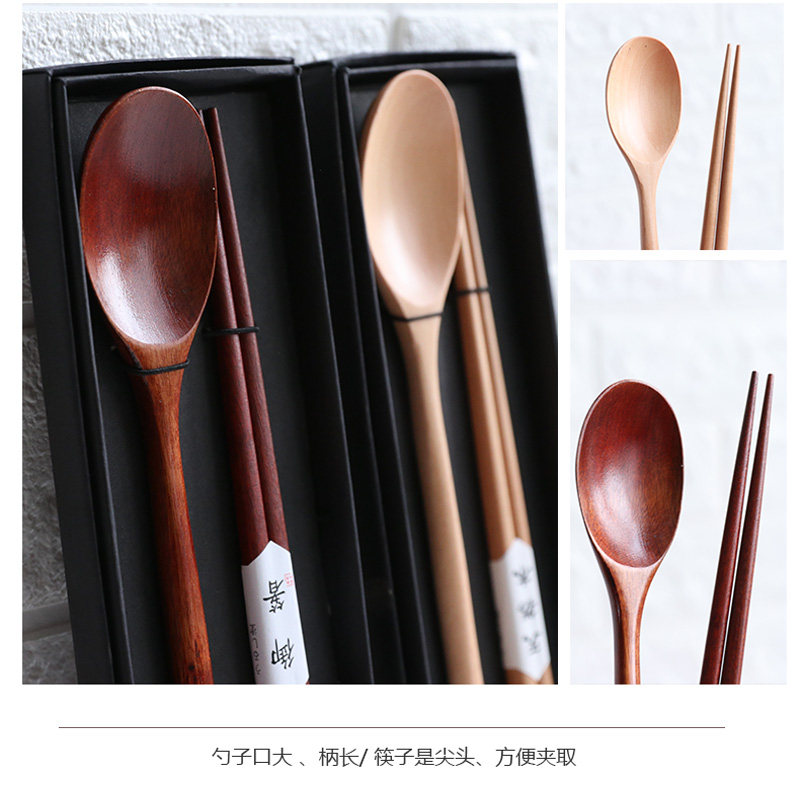 Japanese and Korean style wooden spoon chopsticks set Portable gift box set composed of people spoon chopsticks tableware gift wooden tableware