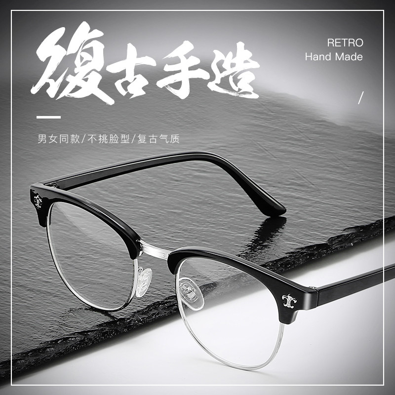 Eye Frames Male Myopia Glasses Retro With Degree Finished Half-Frame Care Destination Comfort Anti-Blue Light Radiation Resistant Computer