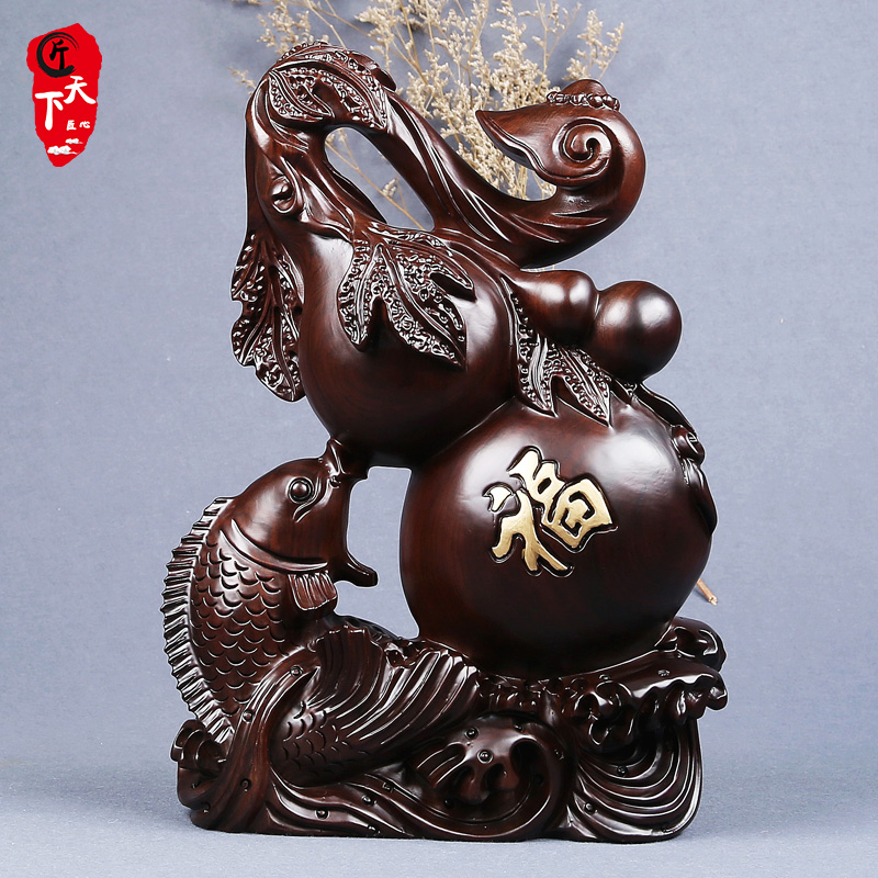 Craftsman world rosewood carved gourd ornaments Carp Fu Lu You Shou Rich Ruyi solid wood mahogany craft gifts