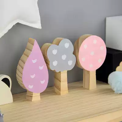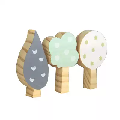 Nordic style home furnishings wood ornaments small trees three sets of building blocks children's room study creative decoration photography props