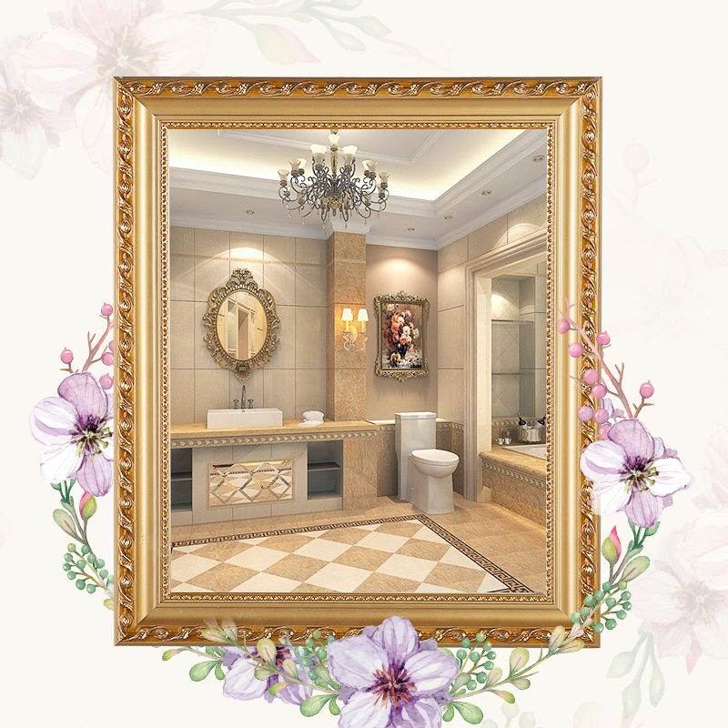 White bathroom mirror glued wall small family frame Bedroom single mirror-shaped half-body mirror comb washstand with frame toilet