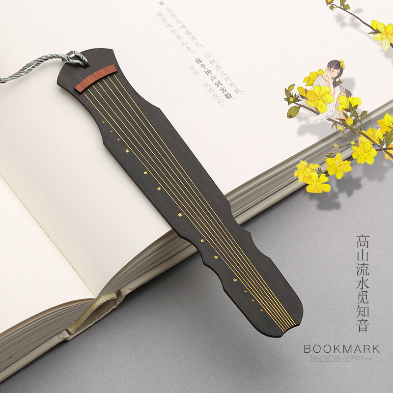 Creative Guqin bookmark set Vintage classic Chinese style mahogany quality girls ancient style literary gift custom lettering