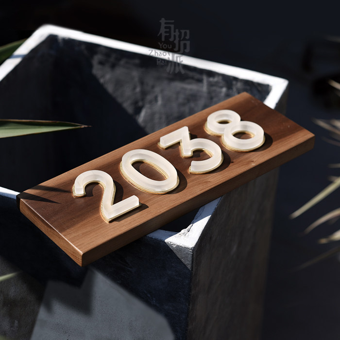 Creative new product brass frosted acrylic word creative personality house sign solid wood shop sign design