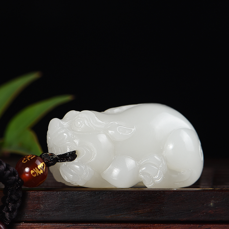 Natural And Tian Jade White Jade Chaetian Chaetian Leopard Pendant Men's Women's Money Leather Fur Leather Jukhiu Small Leopard Bully Pendant Necklace Pendant Necklace