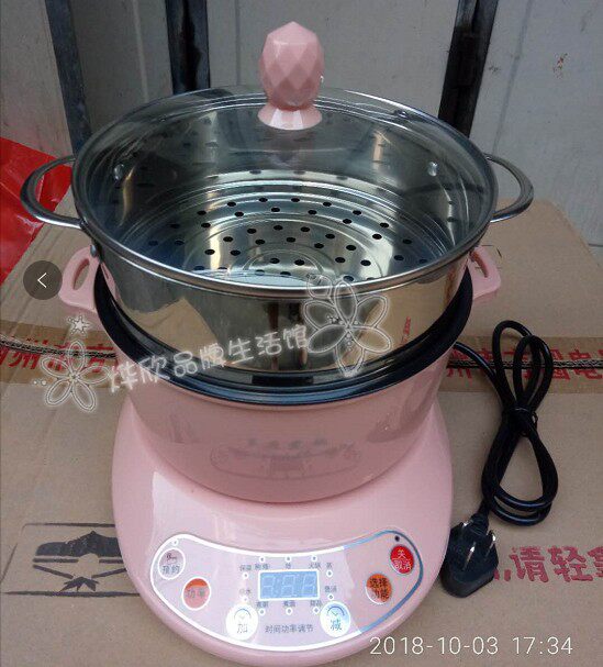 Square-round electronic intelligent stainless steel two-piece steam pot hot pot multifunction home not stained with double layer saucepan cooking porridge