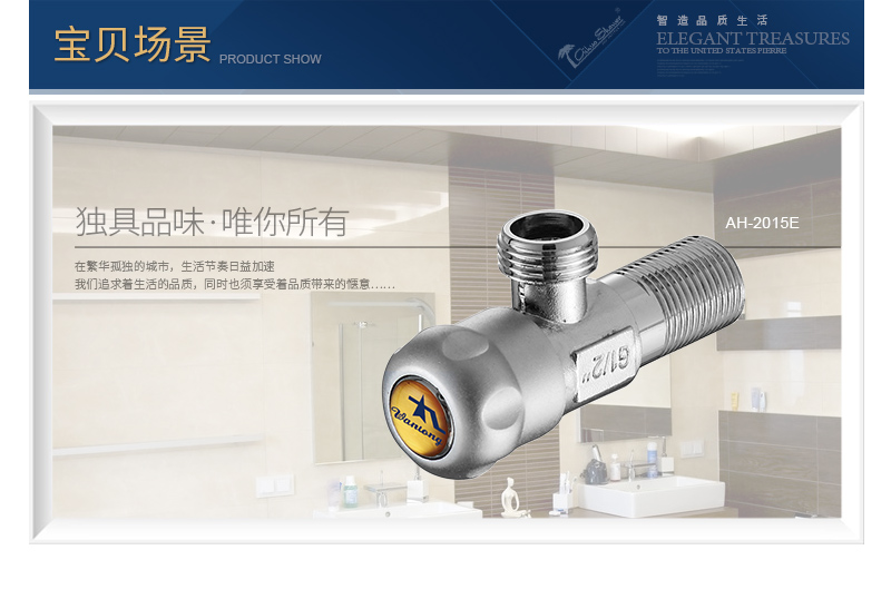 Ahua full copper lengthened into wall toilet water tank water heater tap control switch triangle valve AH615E