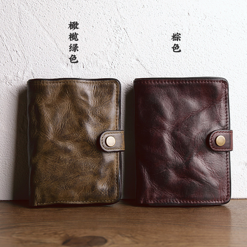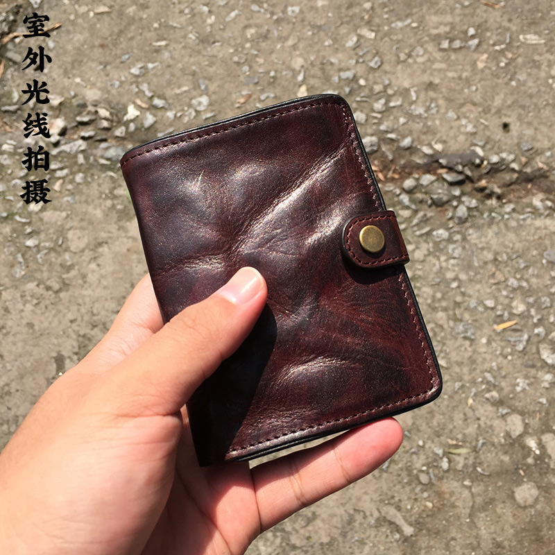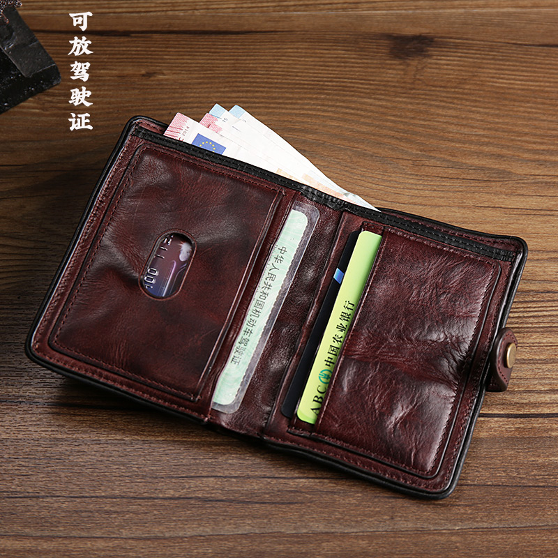 Retro genuine leather men's small wallets washed with wrinkled pleat effect casual little money clips to put driving license headlayer cow leather