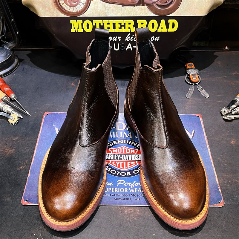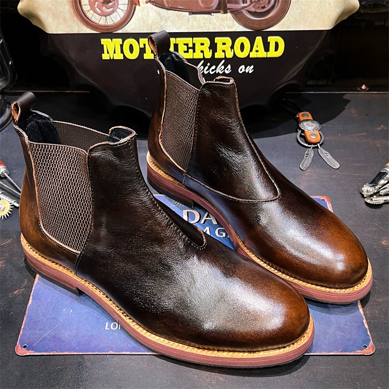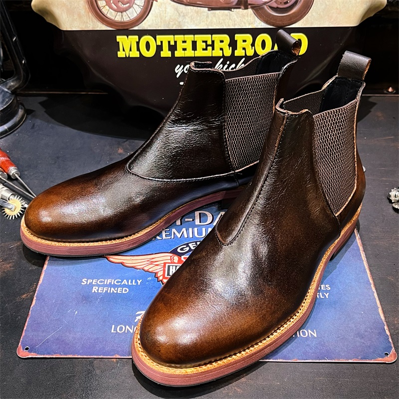 American retro Inn Wind High Help head Chelsea boot Overalls Martin Short Boot Men's Girls High Help genuine leather Shoe Tide-Taobao