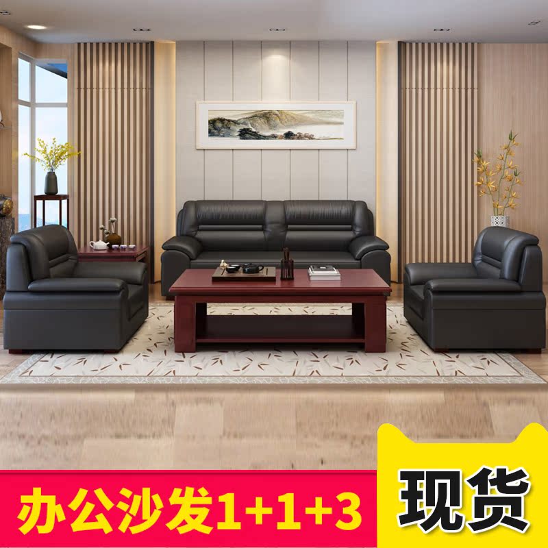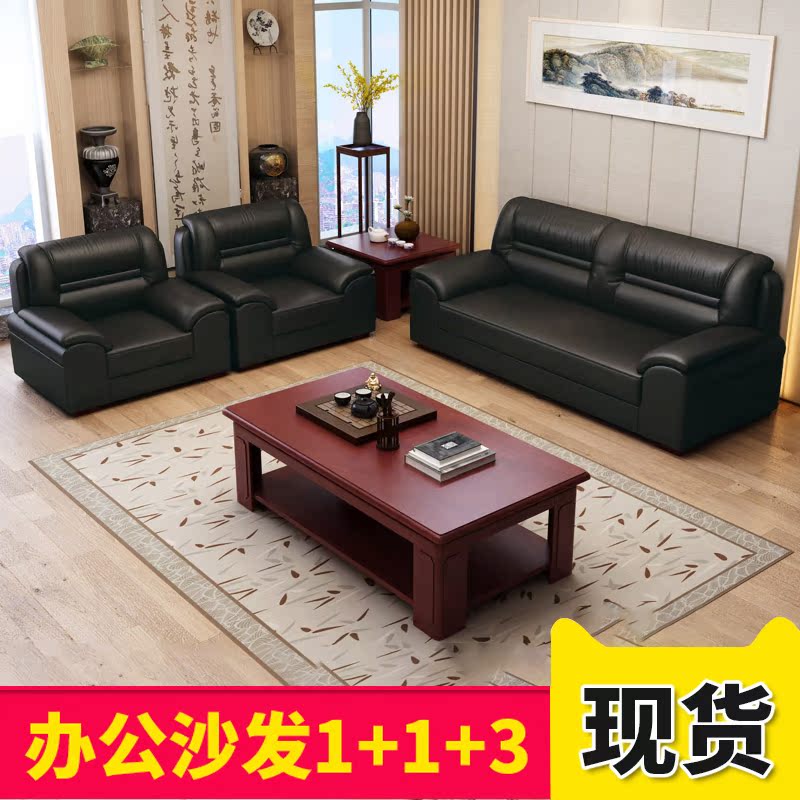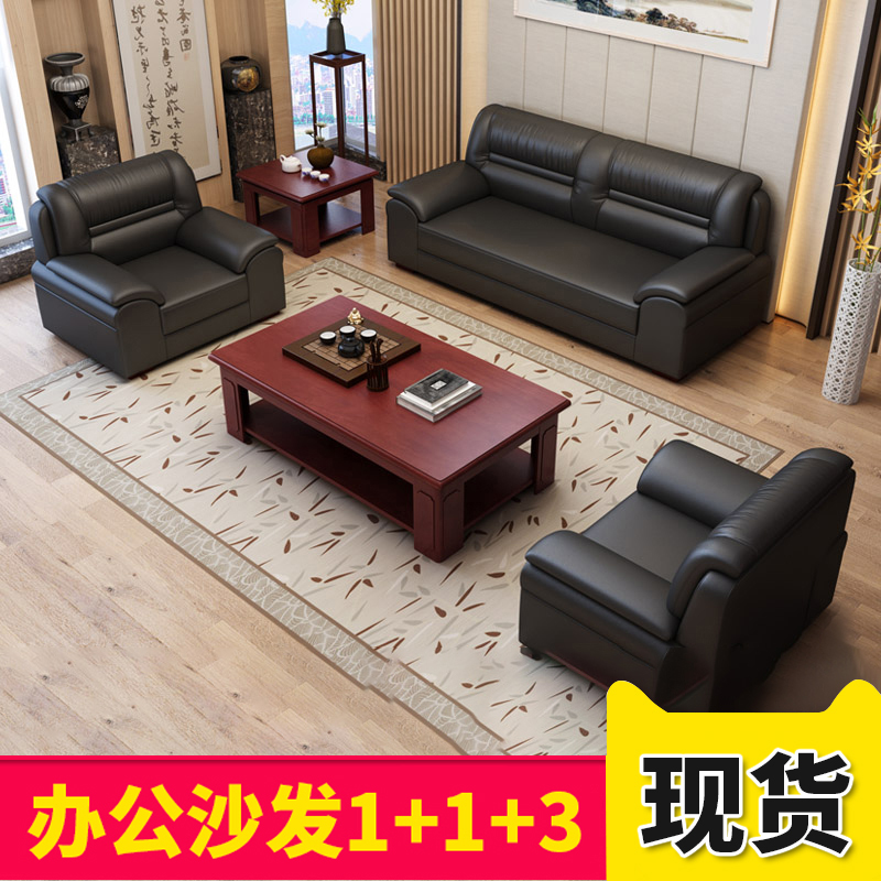 Office sofa Tea Table Combo Business Guests Reception Genuine Leather Brief Modern Single Trio Place Office Sofa
