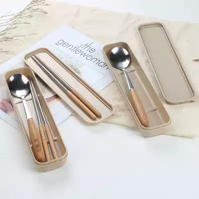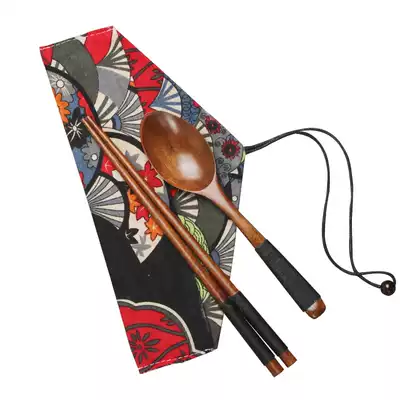 Japanese wooden chopsticks spoon set adult children student portable travel chopsticks spoon tableware storage three-piece set