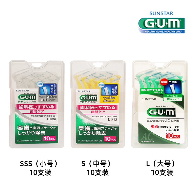 Japan imported GUM Quanshikang interdental brush 10 L-shaped orthodontic periodontal implant tooth interdental brush triangular brush soft bristles